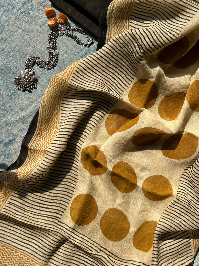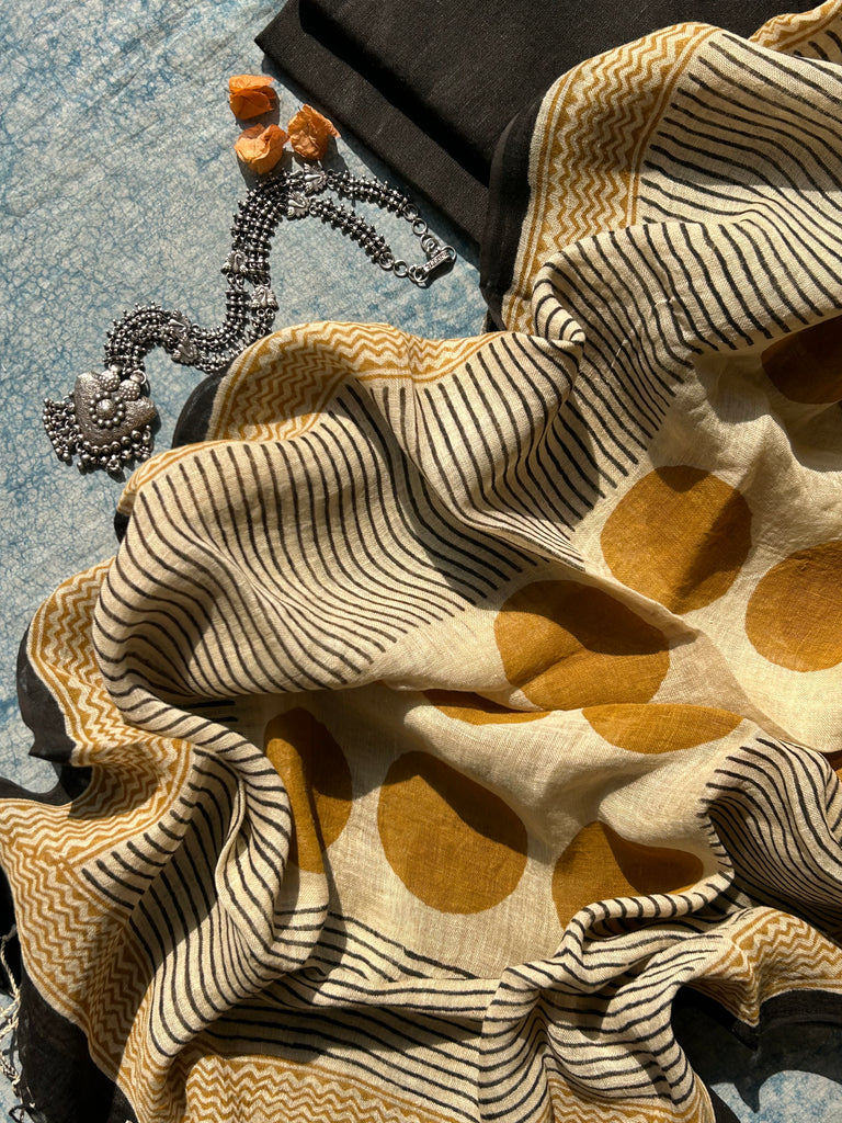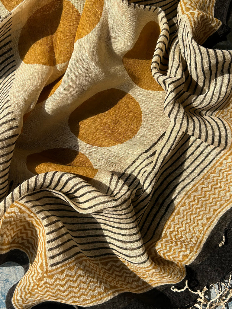 - Dupattas: Machine woven Linen 100tc width 30 inch length 2.4m with block print