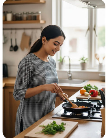 Handwoven cotton in checkered weaving, crafted using natural dyes- your skin's best friend this summer season