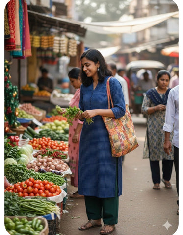 Handwoven cotton in checkered weaving, crafted using natural dyes- your skin's best friend this summer season