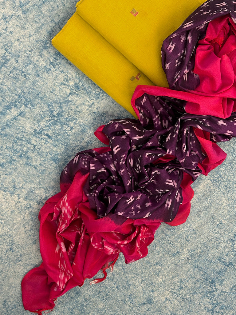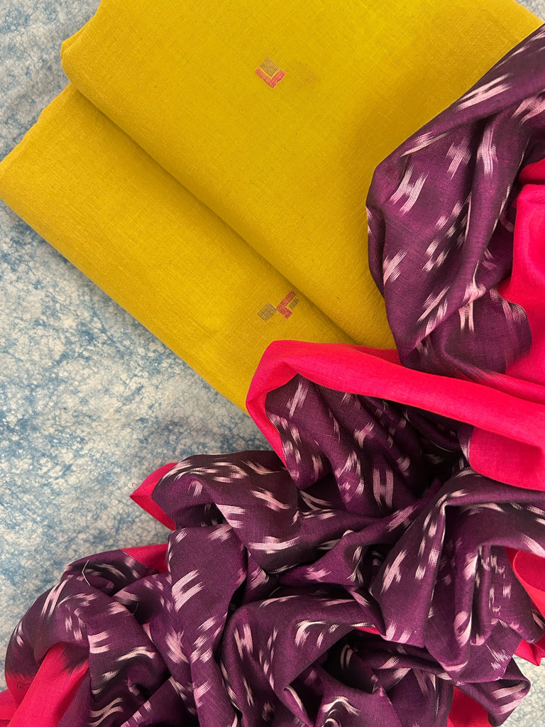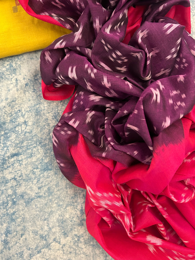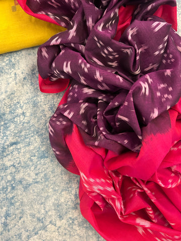 The dupatta is a handwoven ikath cotton in stunning hues and intricate weaving