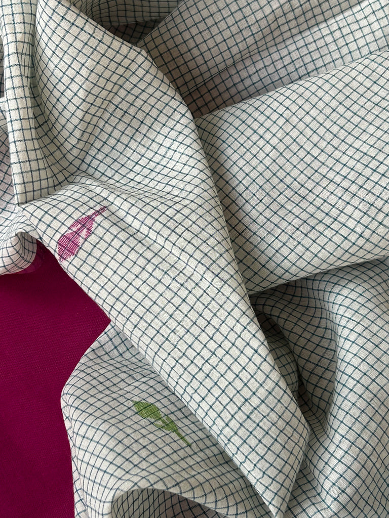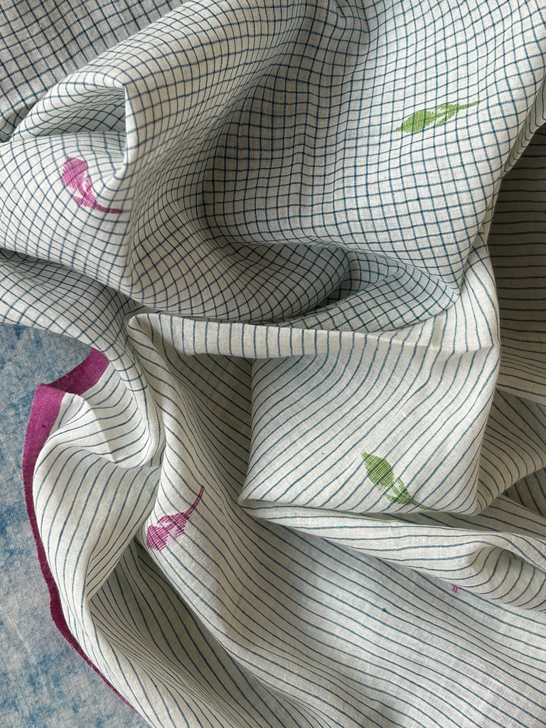 The finest handwoven cotton fabrics from our telangana cluster matched with a feather-soft Bengal Jamdani dupatta, woven in an 84-thread count for unmatched lightness and grace.