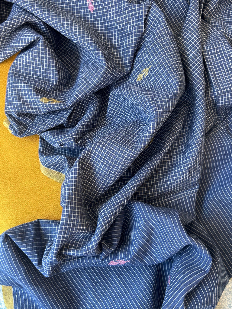 The finest handwoven cotton fabrics from our telangana cluster matched with a feather-soft Bengal Jamdani dupatta, woven in an 84-thread count for unmatched lightness and grace.