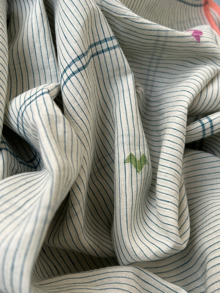 The finest handwoven cotton fabrics from our telangana cluster matched with a feather-soft Bengal Jamdani dupatta, woven in an 84-thread count for unmatched lightness and grace.