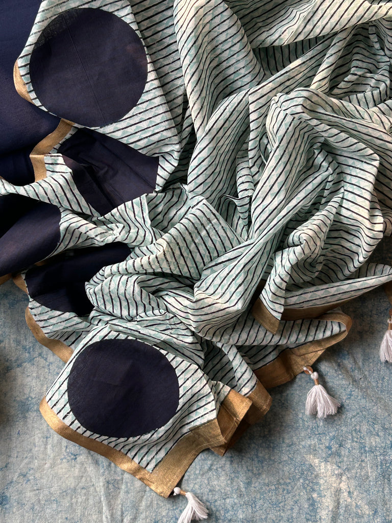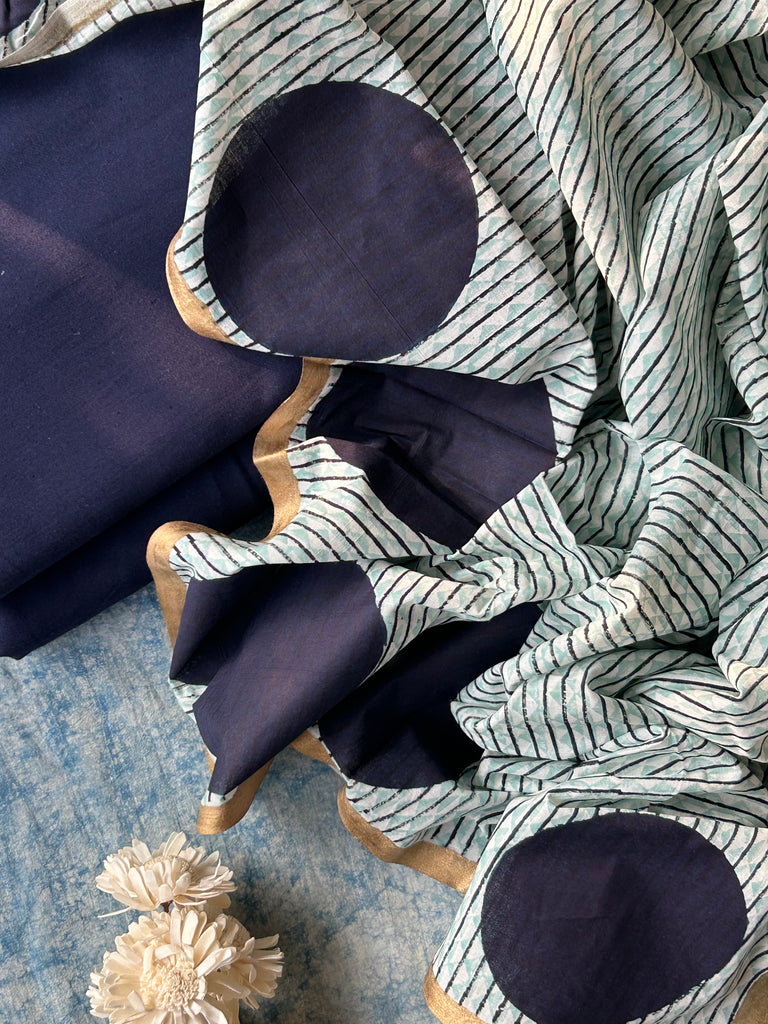 • Dupatta: 2.3 m and above cotton with handblock printing from bagru cluster and hand done tassels