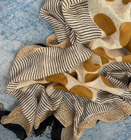 - Dupatta: 2.3 m and above linen with handblock printing from bagru cluster