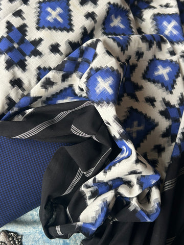 - Bottom : 2.5m Handwoven checkered midnight blue and black ikat cotton