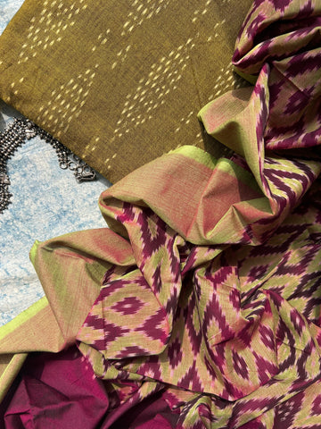 The intricate ikat weaving in boasts of skilled craftsmanship of artisans from Pochampally cluster.